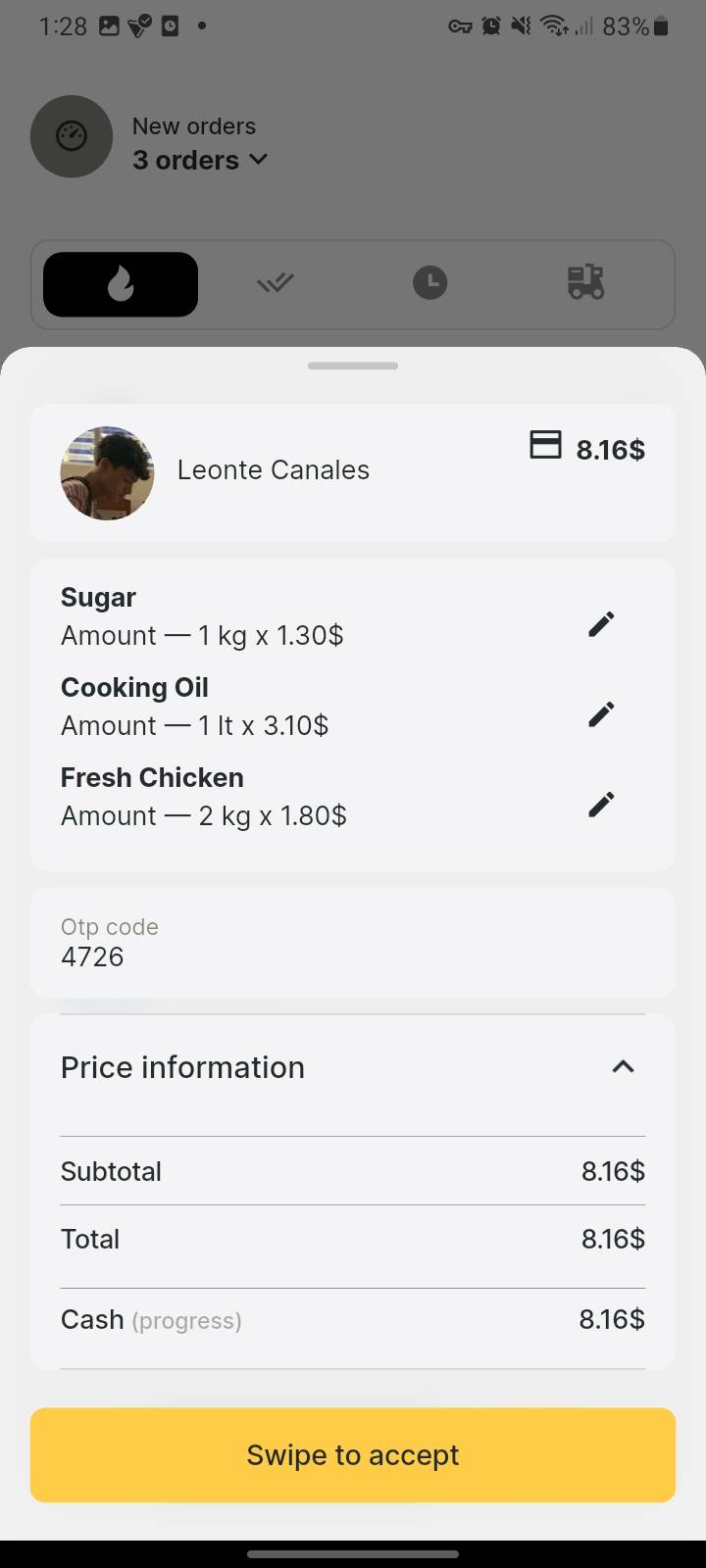 Order and pay from the app. Local shops handle the purchase. Trusted couriers deliver it to your door.